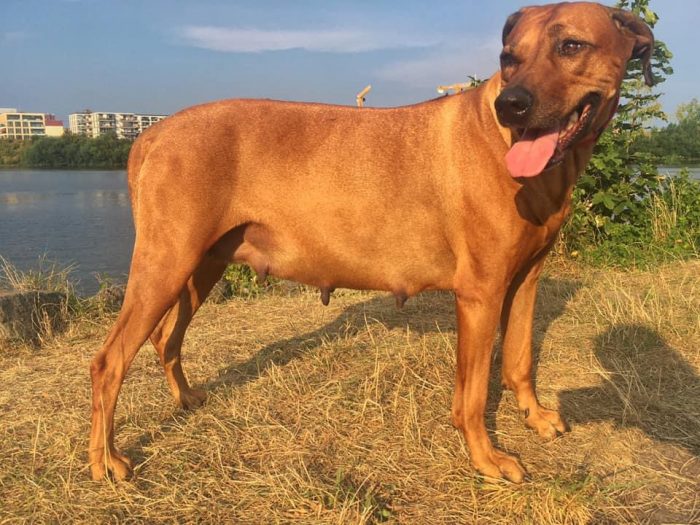 Hier ein Foto vom 44. Tag von Hikimba, der trächtigen Hundemama❤️